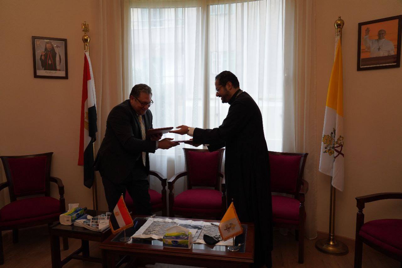 وقالت الكنيسة الكاثوليكية في بيان اليوم، إن الاجتماع شهد توقيع بروتوكول التعاون بين مكتب دياكونيا والمؤسسة في مختلف المجالات، كما تطرق الحديث حول وثيقة الإخوة الإنسانية وكيفية تفعيلها في العمل المجتمعي والتنموي؛ وقد تم اللقاء بحضور الأب كيرلس نظيم، مسؤول مكتب دياكونيا للتنمية، والدكتور أيمن عقيل، رئيس مجلس إدارة المؤسسة، حيث تم بحث سبل التعاون المشترك بين الإيبارشية البطريركية والمؤسسة.