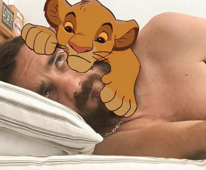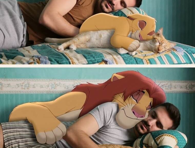 Luigi could use a few more hours of rest but Simba will have none of it. Those sharp claws can’t feel very nice on his face but who could stay mad at that cute lion cub? Where’s Zazu when you need him?