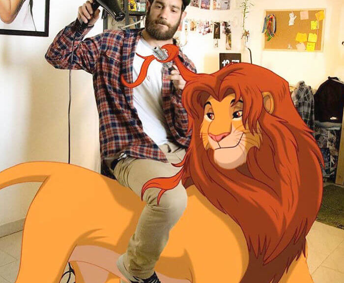 Something that they never talk about in The Lion King is how much maintenance that beautiful mane requires. Simba is the king of everything that the light touches so he recruited Luigi to give him a much needed blowout.