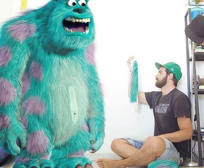 But he didn’t expect to lose some of his precious blue fur! We think this might make it more difficult to get scares back at Monsters Inc. Now he’s getting a little taste of his own medicine.