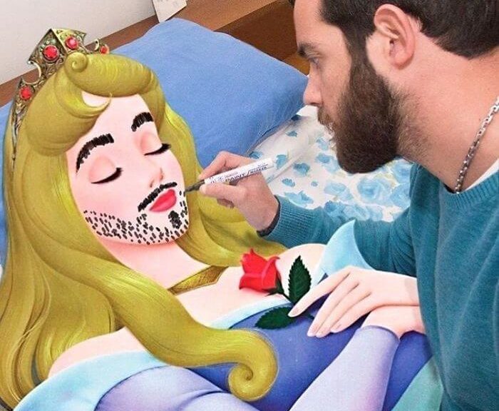 We can’t say we’re surprised that Princess Aurora was the first to fall asleep at the sleepover. It is all she seems to do! So, we can’t blame Luigi for capitalizing and giving her some facial hair. Next time she better try to stay awake to avoid the pranks!
