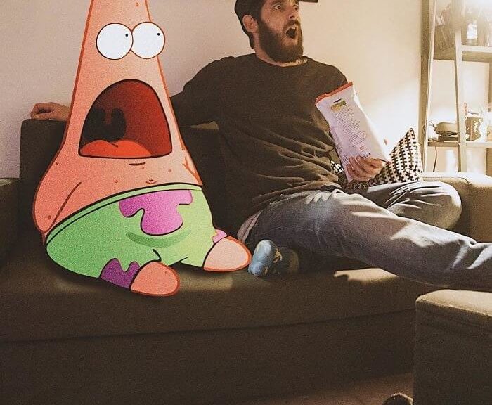 What do you think Patrick and Luigi are watching here? Whatever it is, it must be pretty shocking judging by the look on their faces. We can’t help but wonder if Spongebob would be jealous to find his best friend hanging out with someone else.