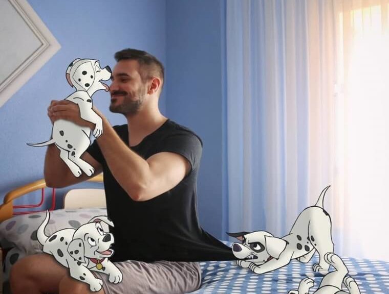 If he’s not careful, Cruella De Ville might come and snatch one of the pups. It looks like the dalmatians are safe and sound in his arms. It’s a gig we are definitely jealous of. Who wouldn’t want to spend the day with a bunch of puppies?