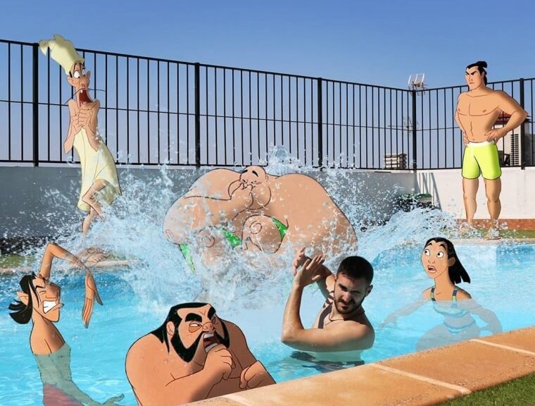 Mulan and the squad came over to Samuel’s house for a pool party. But things got a little out of hand when Chien-Po did a cannonball. In true leader fashion Shane looks none too impressed.