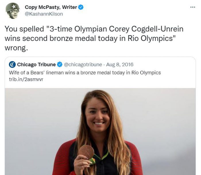 Winning a bronze medal in the Olympics should be celebrated as an individual accomplishment! This Olympian’s husband shouldn’t be attributed to her achievement just because they’re married. It’s not like she gets the credit when her husband plays a good game. How would you feel about your spouse getting the credit for your success?