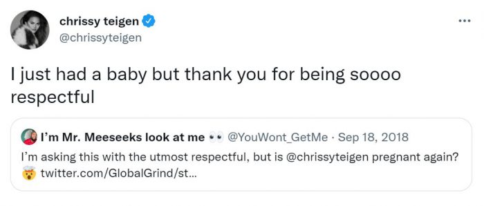 If you don’t know who Chrissy Teigen is, allow us to give you the spark notes version. She’s essentially the queen of Twitter and is most commonly known for her sassy clap-backs. There’s no polite way to comment on people’s bodies, or ask them if they’re pregnant. No matter how many disclaimers you put it’s just rude.