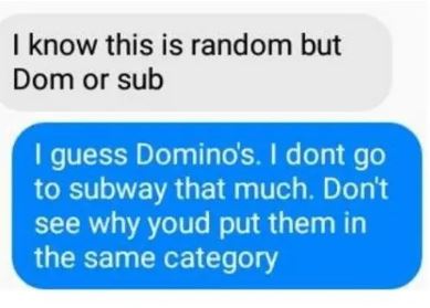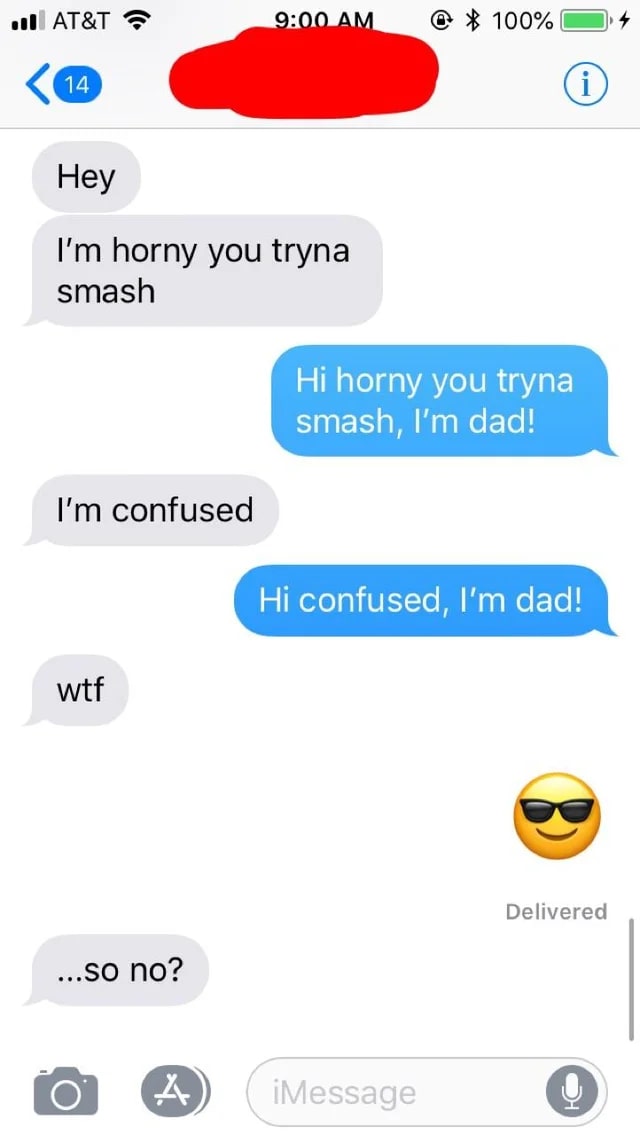 Here’s a tip, if you’re debating on sending a text that sounds cringey, that’s your sign not to click send. Better safe than sorry. If you do choose to send it, you’ll end up with a response like this one, and a bruised ego. This guy was clearly looking for some saucy photos and got shut down REALLY quickly!