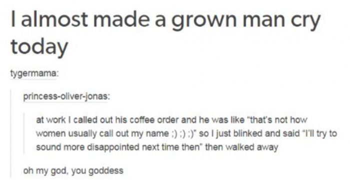 This woman wasn’t going to let him make her feel uncomfortable. Instead, she made him feel embarrassed. He better invest in an at-home coffee machine, he probably won’t want to show his face in there again! As for her, we’d be giving her a raise for her quick wit.