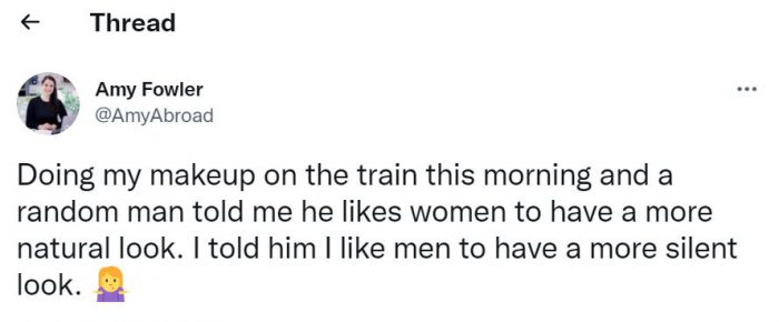 More importantly, why does he think he gets a say about what people do to their faces? We hope he took Amy’s advice into account, after all, someone had to teach him a lesson! How much makeup a woman wears is none of his concern. We applaud Amy for her witty clap back.