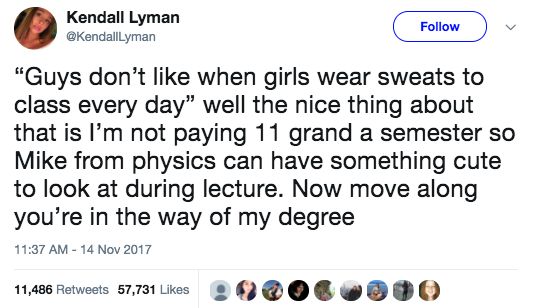 It can be fun to dress up for a special occasion. Yet going to the same class every week is hardly special, so why treat it that way? Your priority in school is to take notes legible enough to be understood when you’re studying for the final. We highly doubt anyone goes into class intending to find their next date, that’s what dating apps are for!